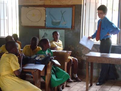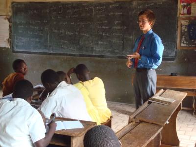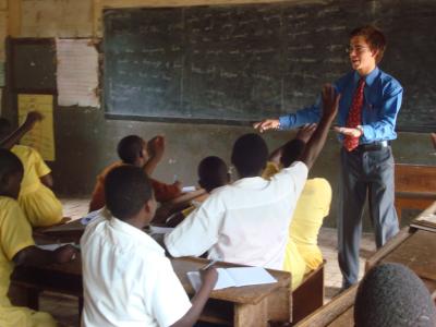 Mit ein paar falschen Erwartungen und sehr nervoes. ging ich dann montags in die P5. Dort ging manches schief, wie das Vorlesen eines einfachen Bibeltextes und schnell wurde mir klar, dass fuer den Anfang nur Frontalunterricht moeglich war. So klappt das NAchsprechen im Chor wundrbar, aber einzeln auf Fragen zu antworten ist fuer viele Schueler schwer moeglich. Auch so etwas wie logisches und selbststaendiges Denken ist noch nicht so ausgepraegt wie in Deutschland vorhanden.